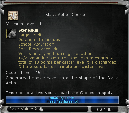 Unbound: This item is Unbound, and may take permanent damage. - Effect: Stoneskin (CL: 15)