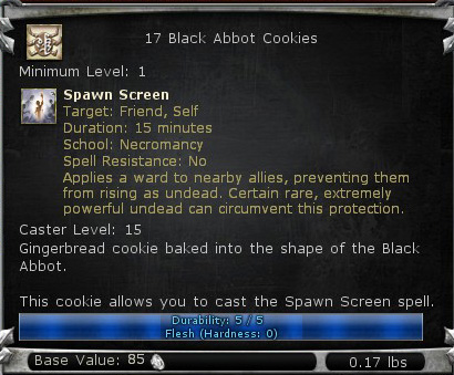 - Description: Gingerbread cookie baked into the shape of the Black Abbot.
