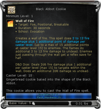 Unbound: This item is Unbound, and may take permanent damage. - Effect: Wall of Fire - Duration 30 seconds (CL: 15)