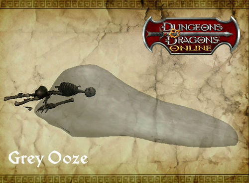 You can count yourself lucky if you've done any exploring of the dungeons of Stormreach and still failed to encounter any of these pestilences. Oozes are common within the wet and dark confines of the underworld, and the gray ooze represents one of the weaker ooze varieties found in Xen'drik. The worst part of encountering these nuisances is that one may not even notice anything unusual about these little puddles until it is too late. Without a truly superior awareness - generally found only in the most perspicacious of rogues - the creature is likely to have the advantage of surprise. And so the encounter begins with the ooze, slow-moving though it may be, with the first strike advantage.