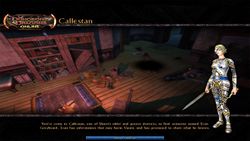The Quest Journal refers to the location as "Castellan" in the text; however, everything else (location in Quest Journal, character location, quest entrance dialogue) refers to it as "Callestan".