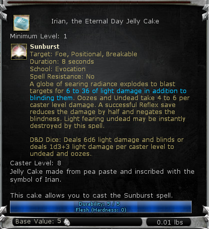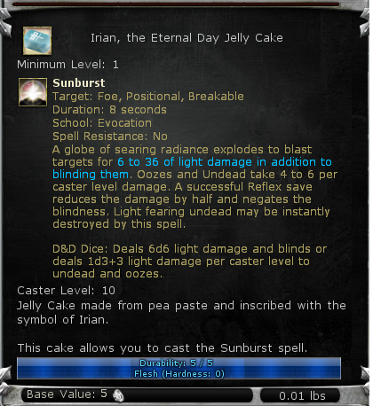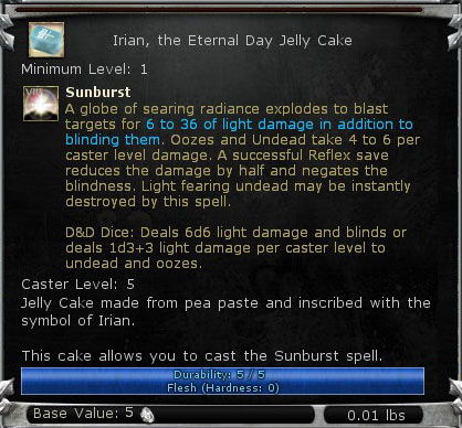 Unbound: This item is Unbound, and may take permanent damage. - Effect: Sunburst (CL: 5)