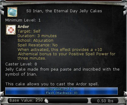 Unbound: This item is Unbound, and may take permanent damage. - Effect: Ardor (CL: 8)