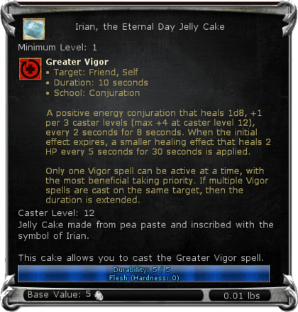 Unbound: This item is Unbound, and may take permanent damage. - Effect: Greater Vigor - 10 seconds (CL: 12)