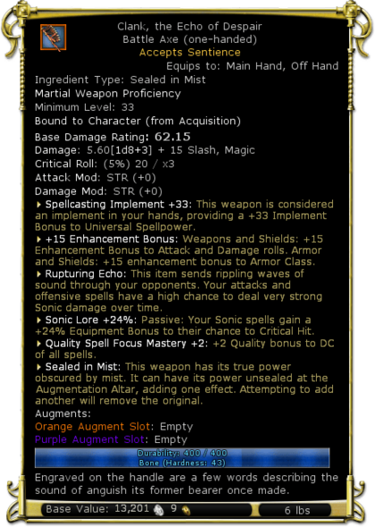 | Weapon Type | Battle Axe / Slashing weapons | |