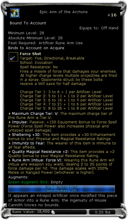 It appears an intrepid Artificer once modified this piece of Armor into a Rune Arm; the ingenuity of House Cannith knows no bounds. | |||||||||||||||||||||