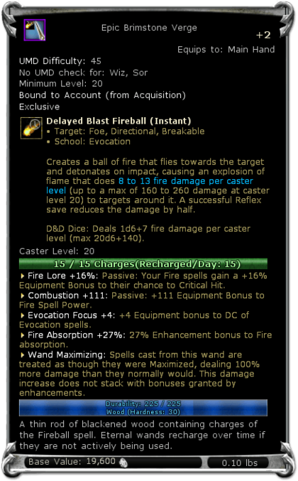 | UMD Difficulty | 45 | Delayed Blast Fireball (Instant) Caster Level: 20 |