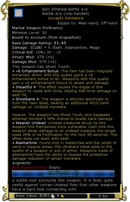 | Description | A subtle mist surrounds this weapon. It is likely quite useful against certain Undead foes that other weapons have a hard time connecting with. | |