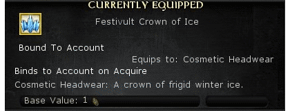 | Description | Cosmetic Headwear: A crown of frigid winter ice. | |