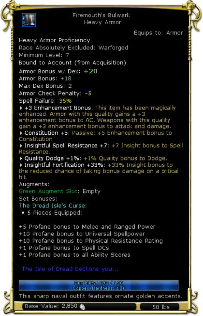 | Arcane Spell Failure | 35% | |