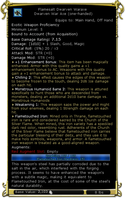 | Weapon Type | Dwarven War Axe / Slashing weapons | |