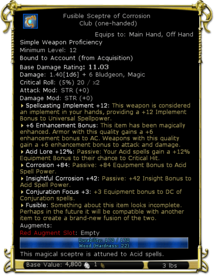 | Description | This magical sceptre is attuned to Acid spells. | |