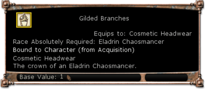 | Description | Cosmetic Headwear: The crown of an Eladrin Chaosmancer. | |