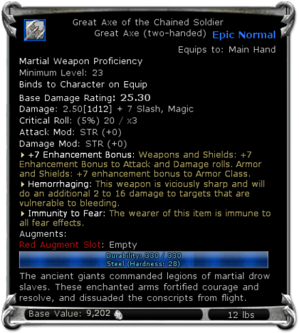 | Damage and Type | 2.50[1d12] + 7 Slash, Magic | |