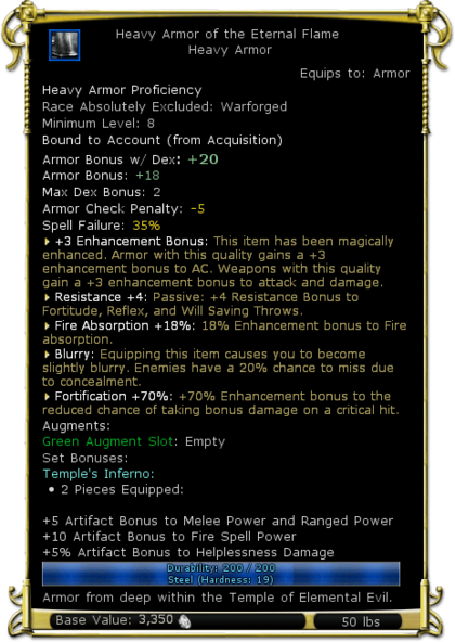 | Description | Armor from deep within the Temple of Elemental Evil. | |