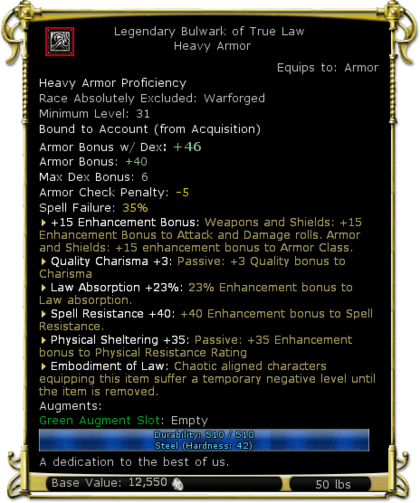 | Please create an account or log in to get the most updated information (this is up to 10 hours old), remove ads, access dark mode or the mobile friendly Timeless skin, and build a reputation to unlock more editing privileges. Please visit DDO wiki's Discord chat server if you need any help! |