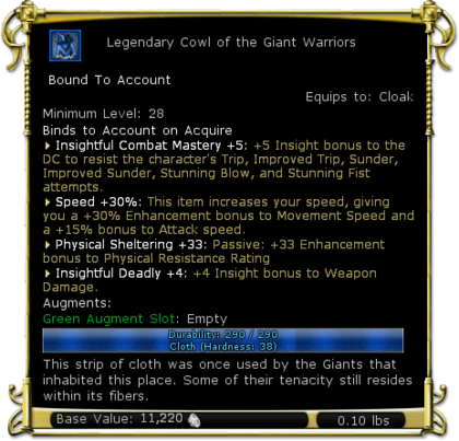 | Description | This strip of cloth was once used by the Giants that inhabited this place. Some of their tenacity still resides within its fibers. | |