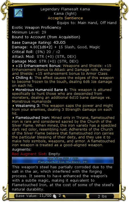 | Damage and Type | 4.80[1d6+2] + 15 Slash, Good, Magic | |