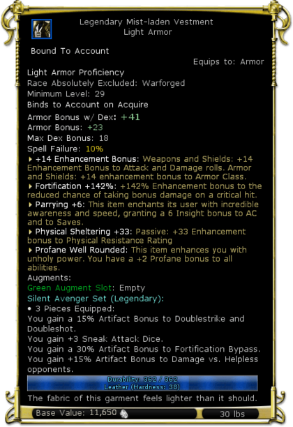 | Please create an account or log in to get the most updated information (this is up to 0 hours old), remove ads, access dark mode or the mobile friendly Timeless skin, and build a reputation to unlock more editing privileges. Please visit DDO wiki's Discord chat server if you need any help! |