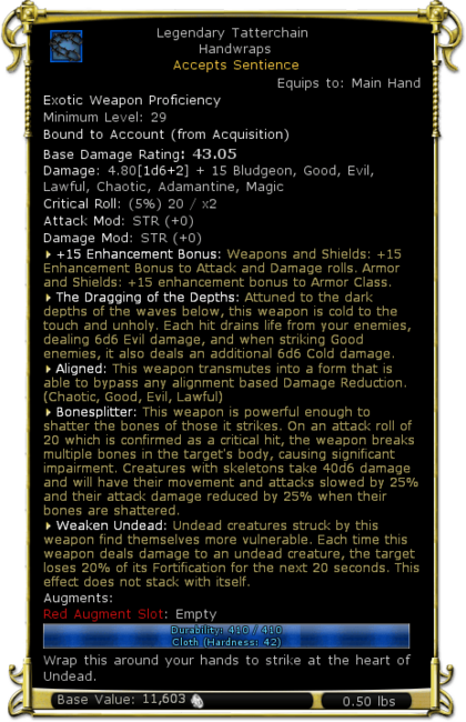 | Description | Wrap this around your hands to strike at the heart of Undead. | |