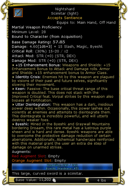 | Damage and Type | 4.60[1d6+3] + 15 Slash, Magic, Byeshk | |