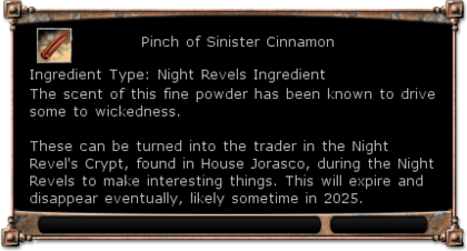 These can be turned in to the trader in House Jorasco during the Night Revels to make interesting things. This Candy will expire and disappear near the end of <current year>.