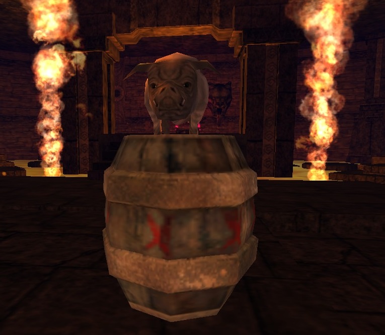 - Description: There's a pig sitting on this barrel.