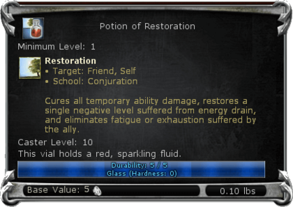 Unbound: This item is Unbound, and may take permanent damage. - Effect: Restoration - (CL: 10)