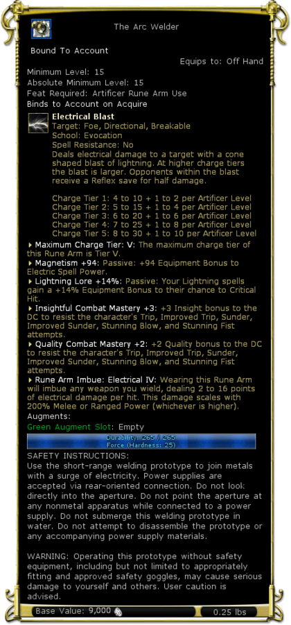 | Required Trait | Artificer Rune Arm Use | |||||||||||||||||||||