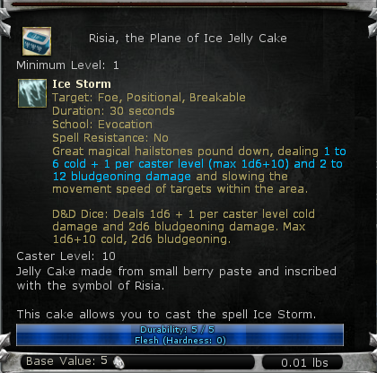 Unbound: This item is Unbound, and may take permanent damage. - Effect: Ice Storm, Duration: 30 seconds (CL: 10)