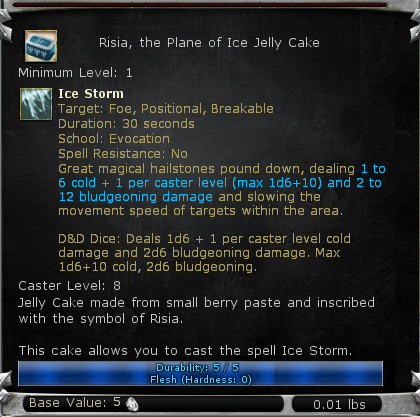 Unbound: This item is Unbound, and may take permanent damage. - Effect: Ice Storm, Duration: 30 seconds (CL: 8)