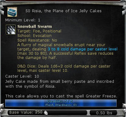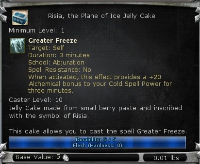 Unbound: This item is Unbound, and may take permanent damage. - Effect: Greater Freeze, Duration: 3 minutes (CL: 10)