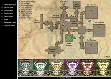 Make you way back up to the top of the North Pillar. The security Center has a number of Trogs inside it as well. Kill these off and then proceed to the wheels. Set the wheels to the symbols shown in The Pit Map above. Once you have all the wheels set to the appropriate symbols, throw the lever on the middle lower level by the purple wheel (Puzzles in DDO).