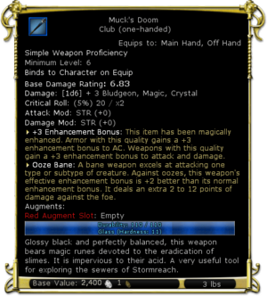 Ooze BaneOoze Bane: A bane weapon excels at attacking one type or subtype of creature. Against Oozes, this weapon's effective enhancement bonus is +2 better than its normal enhancement bonus. It deals an extra 2 to 12 points of damage against the foe.